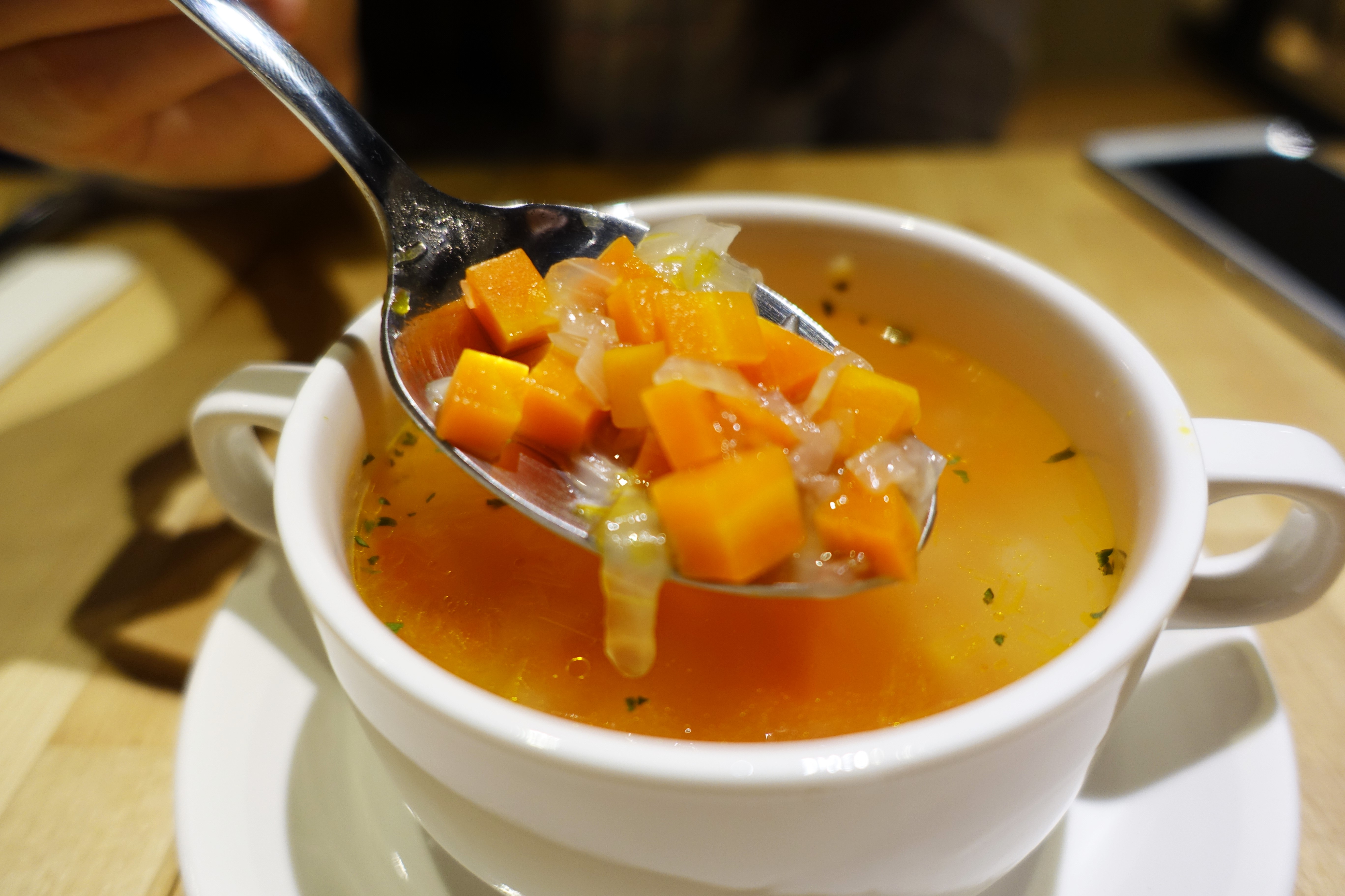 當天個人覺得最神的不是頂級肋眼牛肉,而是這道蘿蔔洋蔥蔬菜湯!!!為什麼呢?難道他用了傳說中的廚具嗎(誤),神奇的地方在於筆者非常討厭吃蘿蔔與洋蔥,但當天我把它吃光了........