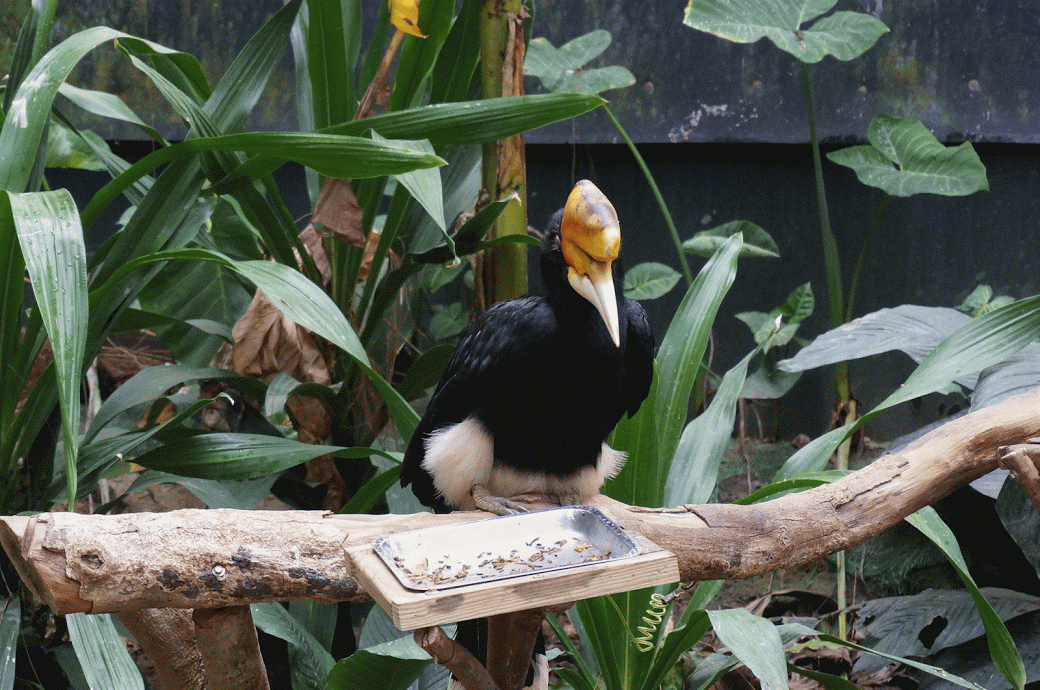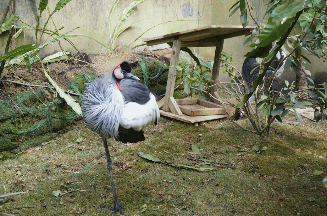 金剛鸚鵡旁有一名很長相奇特的鳥類,不得不將目光轉移到牠身上,為牠停留駐足一會兒。