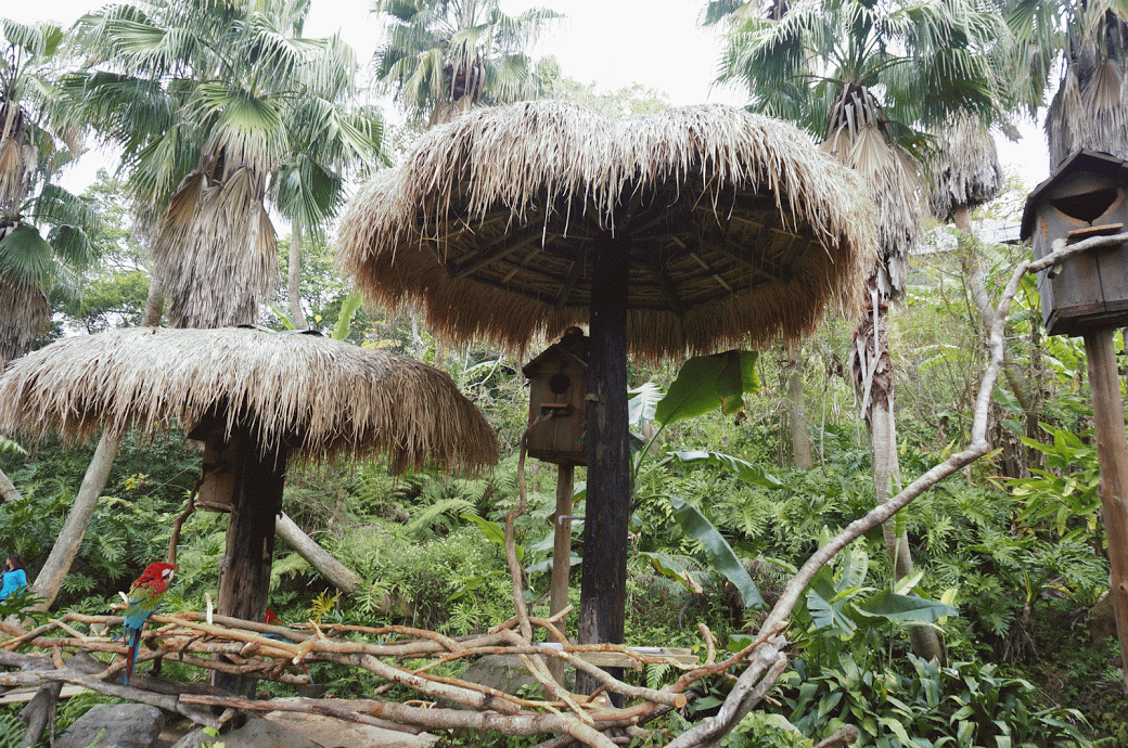 旁邊遊客服務中心的外觀,延續著金剛鸚鵡區熱帶氣候的茅草屋風格,而這裡提供園區各項諮詢服務,