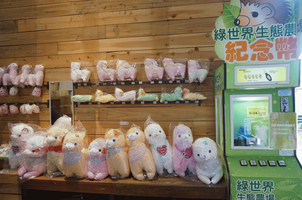 解說中心的前半段區域是販賣園區紀念品和具綠世界特色代表的動物玩偶,