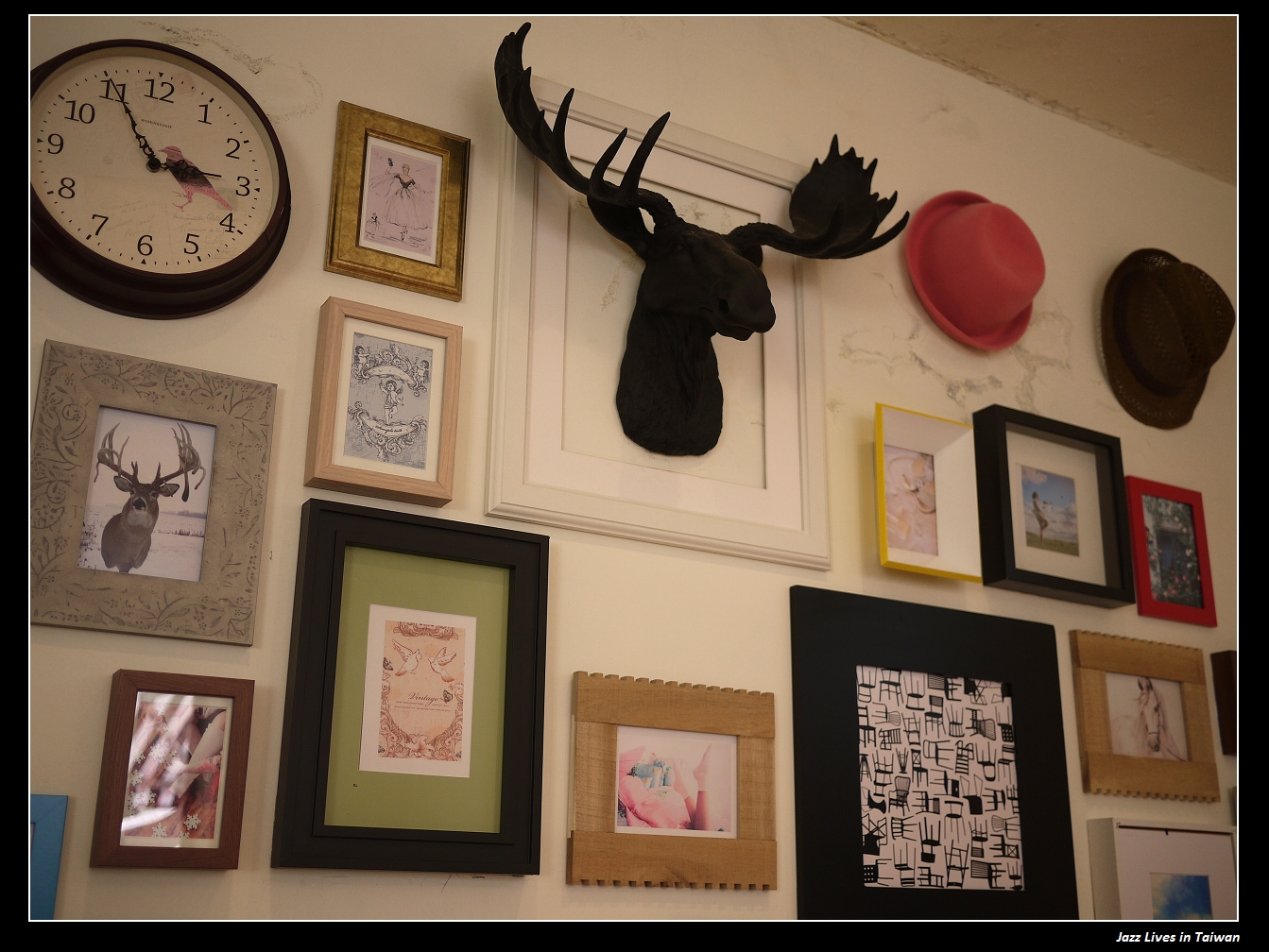兩面牆上有不同的擺飾, 坐在下頭喝下午茶, 就是有氣氛,