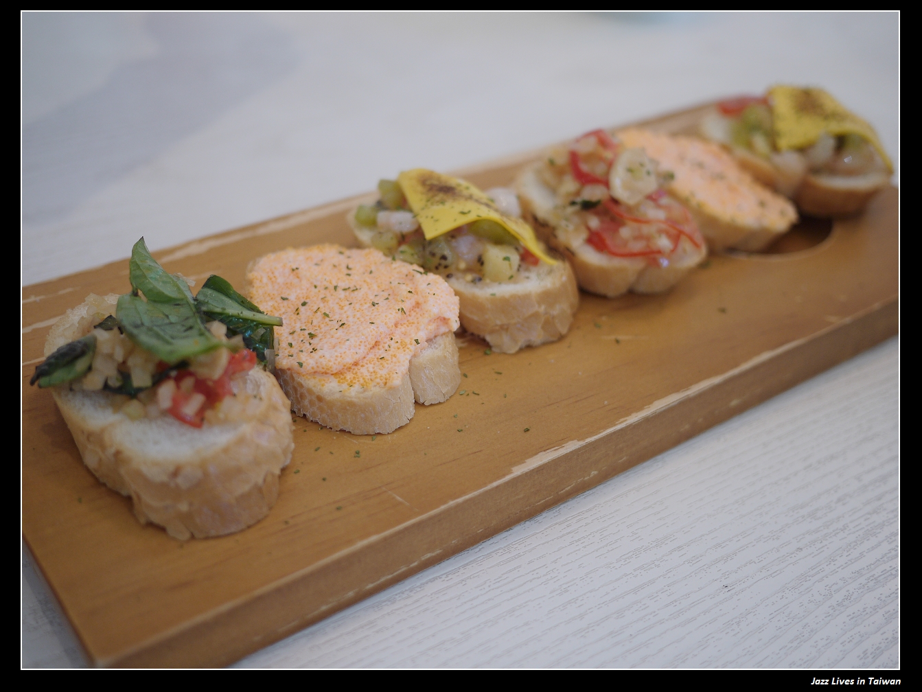 母親節套餐之普切達, 因是雙人套餐, 所以這餐板上有兩人份, 一份有三種口味,