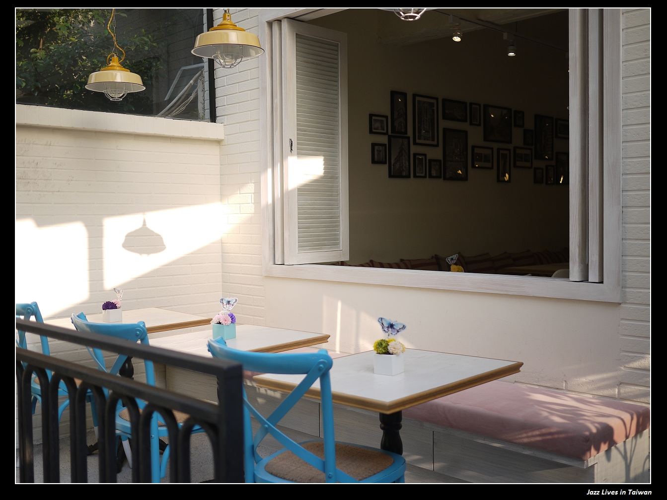 戶外用餐區還有滿滿一整面植物的芬多精牆, 讓人看到就覺得很舒服, 每個地方有都是取景拍照的好場所, 從外頭透過窗戶往裡面看去, 店員正忙碌的清理桌面,