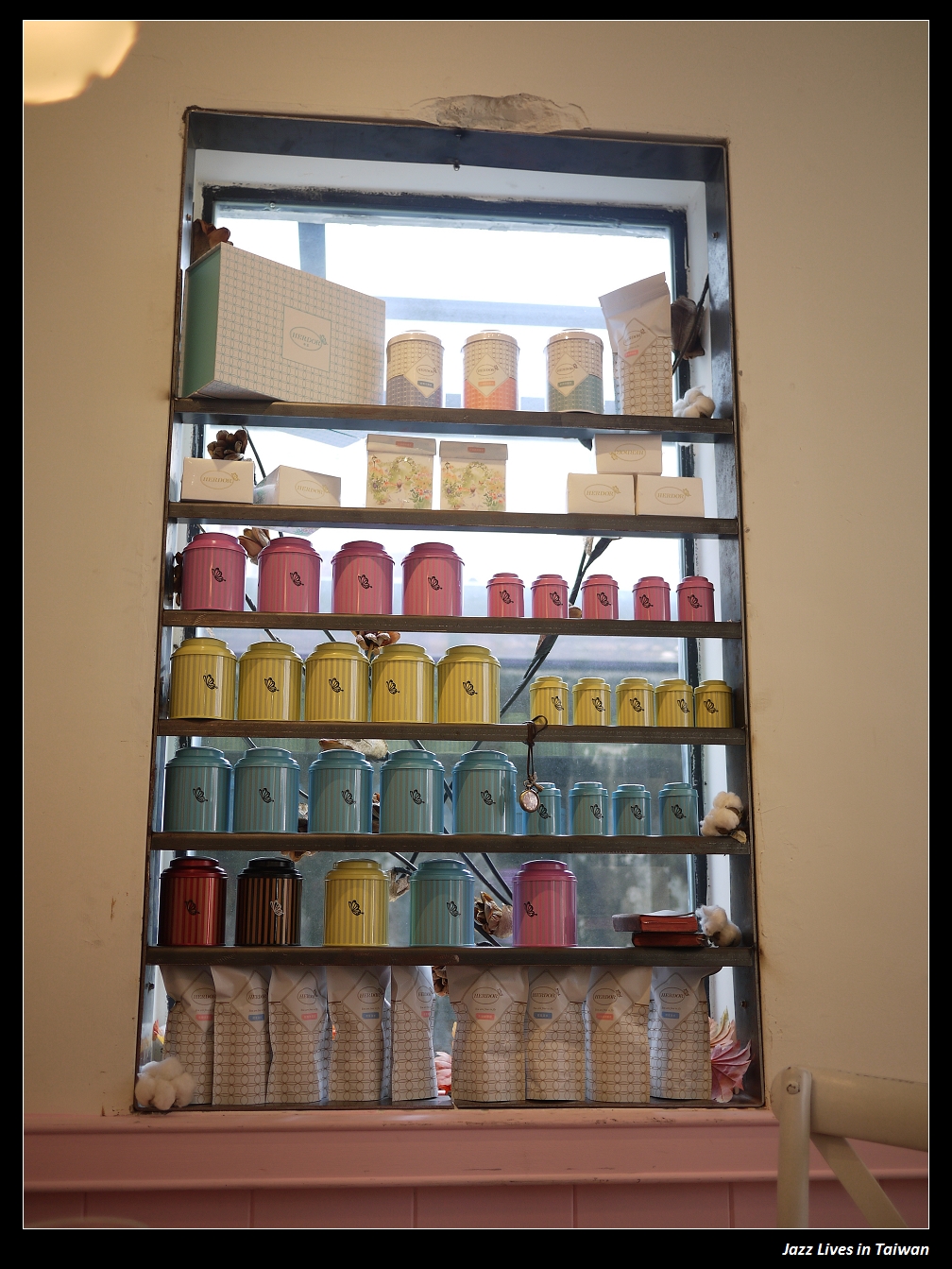 進門啦! 窗邊佈置著店家特製不同少女顏色的茶罐,