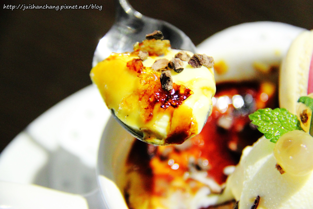 現烤的焦糖烤布蕾外皮有酥脆焦糖片,下層的布蕾綿密香濃滑順,一起入口後在嘴中散發出濃郁綿密的奶香〜
