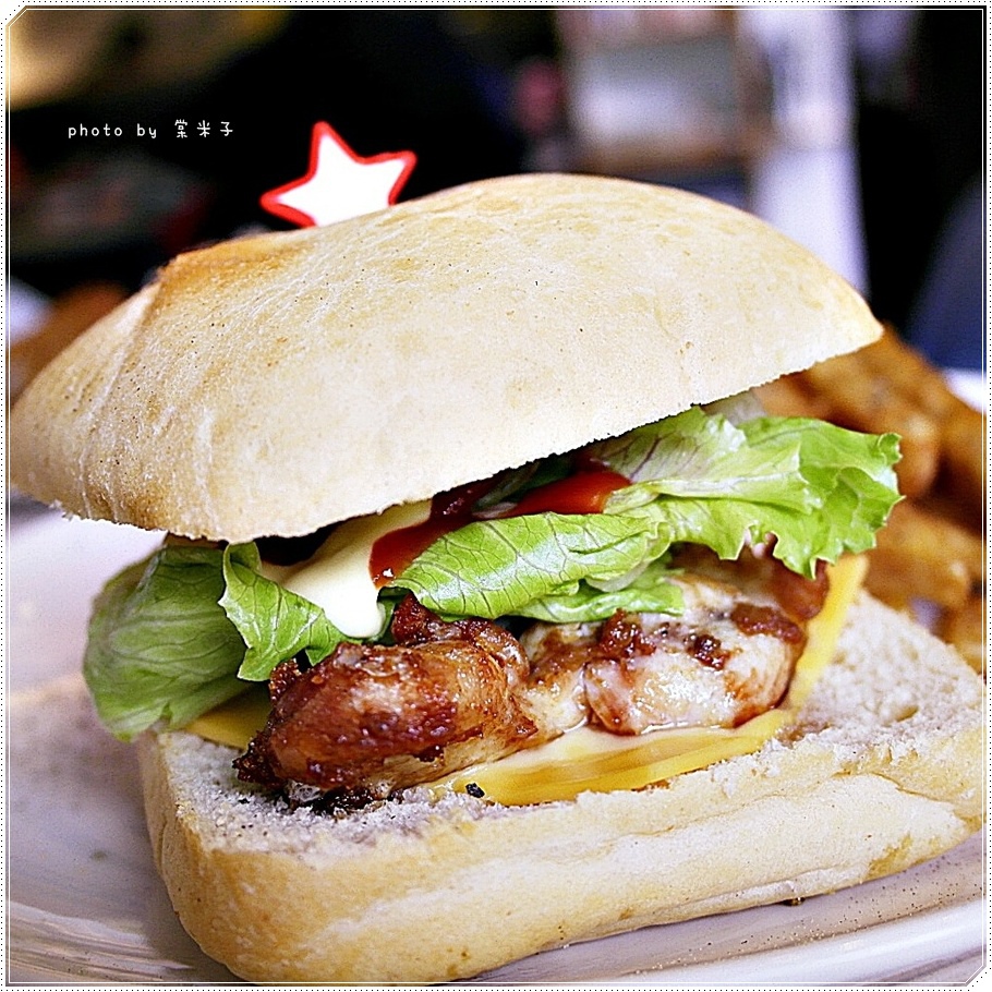 搭上了清脆的生菜和小黃瓜、微酸的番茄、鹹香的起司片和煎的外層微酥口感柔嫩的雞肉,