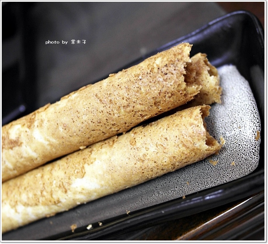 較一般蛋捲粗壯些的香蕉蛋捲顏色呈現較深的褐色,