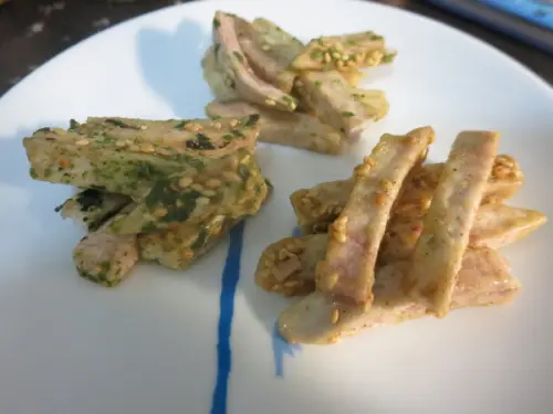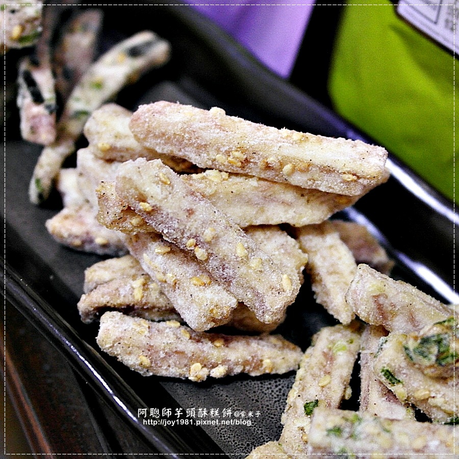 芋頭條上是細條狀的海苔條而不是一般餅乾慣用的海苔粉,