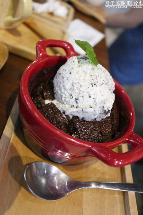 熱巧克力蛋糕吃起來苦中帶甜,苦的部份我覺得比較多一點,