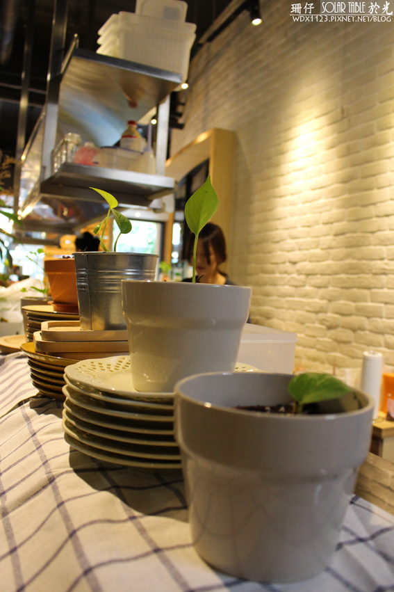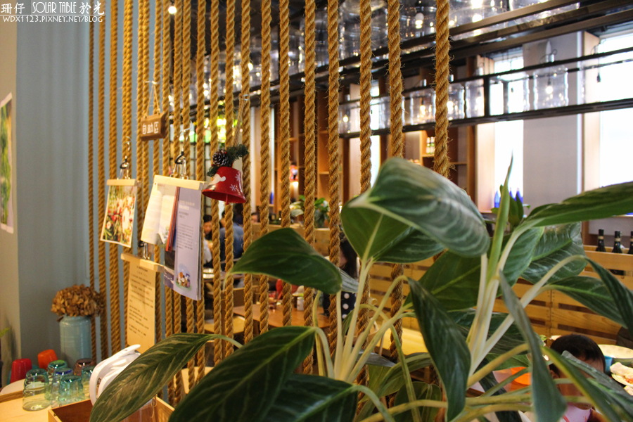 餐廳內利用了許多盆景來美化綠化,讓整個氛圍很清新、充滿綠意、生生不息的感覺。