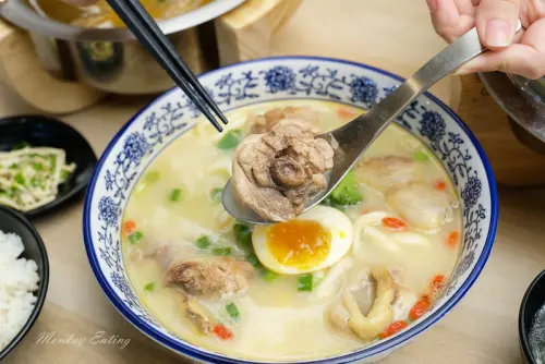 ▼湯頭呈現自然的金黃色澤,表面還會有一層類似薄膜的感覺,代表真的是真材實料去熬煮出來的!喝起來口感有點濃稠感,在嘴裡黏化開來,香醇甘甜,非常好喝!