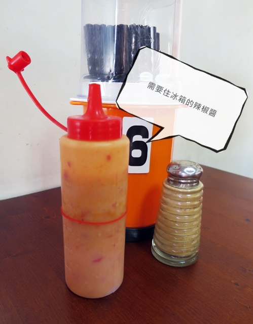 米漿辣椒 是店家自己做的 用餐尖峰期過後會收起來...純天然不添加 所以要住冰箱