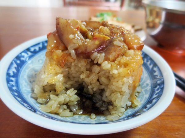 米糕口感略Q軟 底下的醬汁不油 屬於比較清爽的調味略帶點甜味 整個攪拌過再吃 鹹度上我個人覺得剛剛好