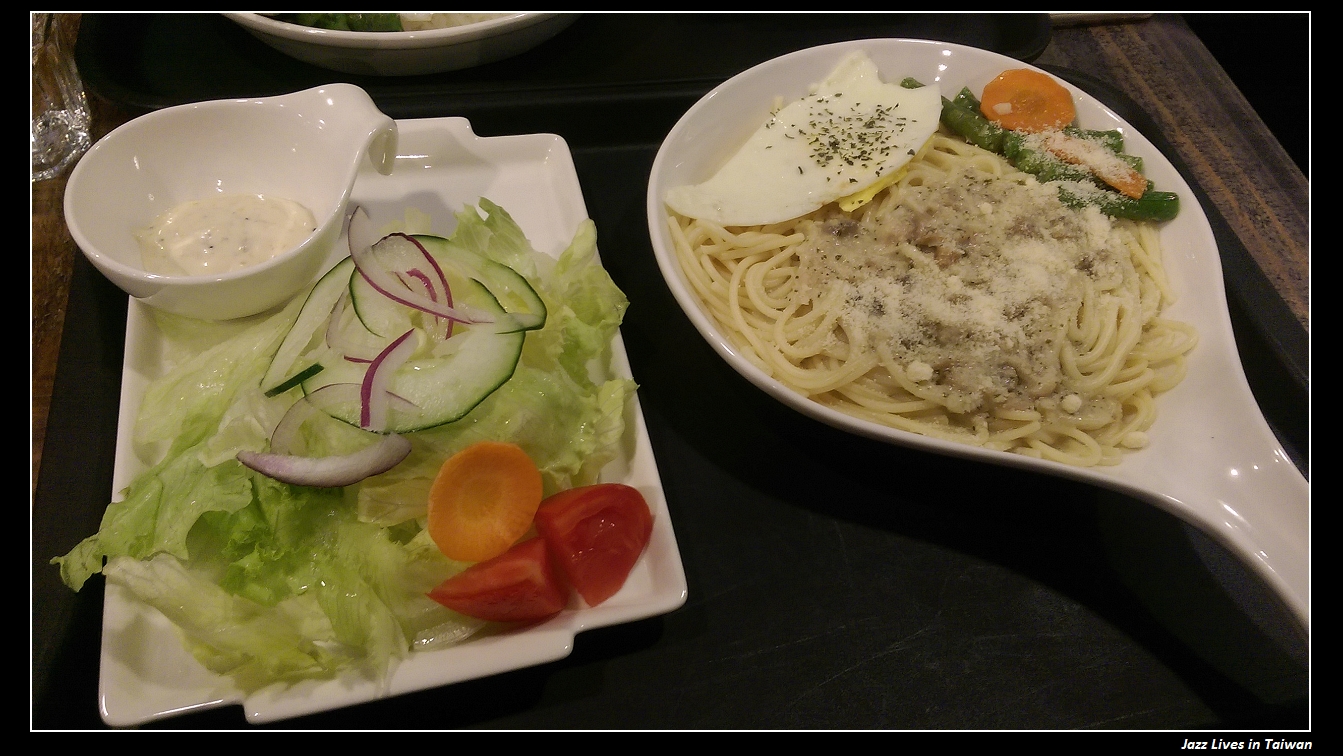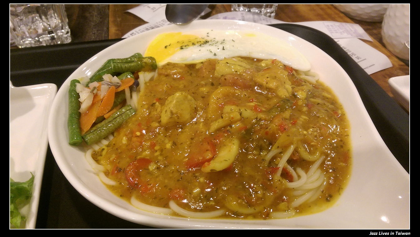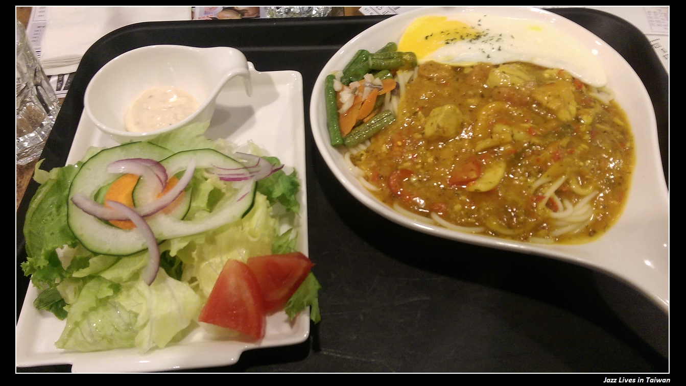 當下吃沒特別留意到, 回來整理照片才驚覺, 坑爹啊! 這到西班牙海鮮麵既不西班牙也沒有海鮮啊? 不知道餐點為啥取名叫西班牙海鮮麵,