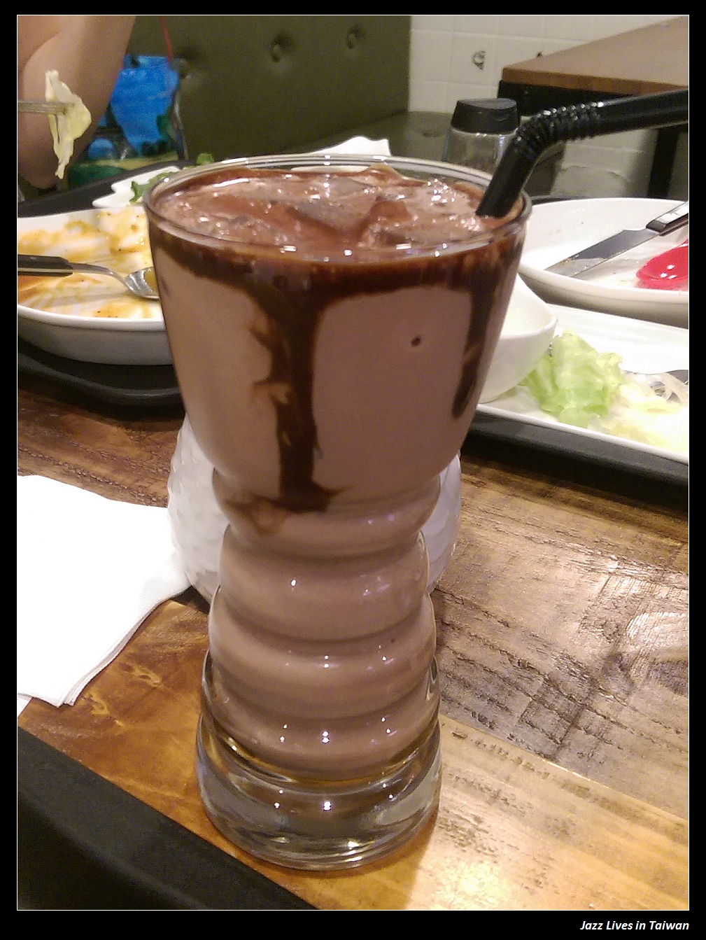 冰巧克力($130), 點餐時就有說要等些時候才能上桌, 所以這杯上桌時, 餐點都已經吃完了, 喝的雖然略趕了些, 不過可以確定這不是美露或便宜三合一包泡出來的那種稀稀的味道, 而是真的帶有微苦味還是很甜的濃厚款冰巧克力,