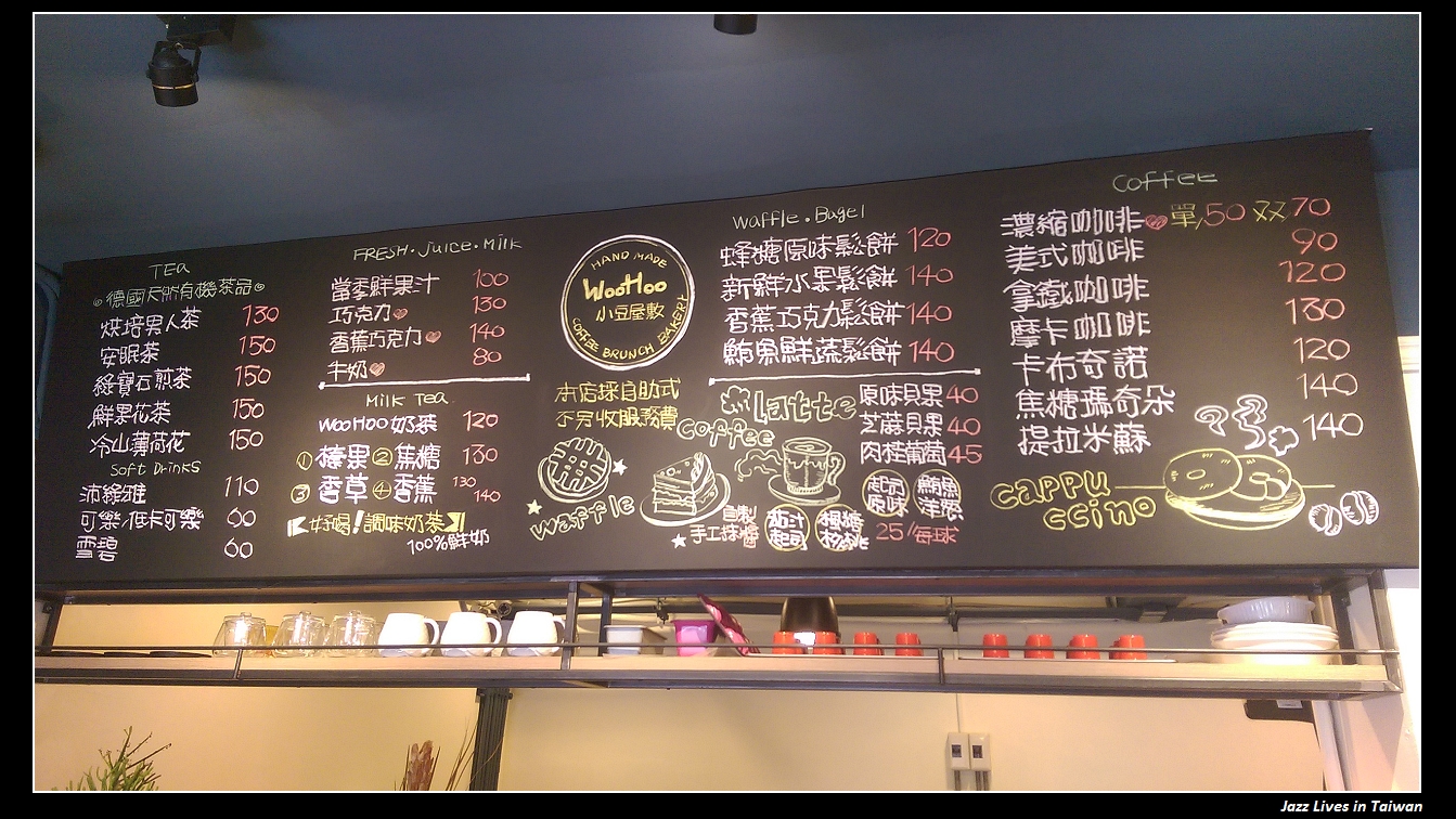 進門口點餐區上頭的黑板寫的一手可愛的POP菜單, 飲品的價位看起來還OK啦!