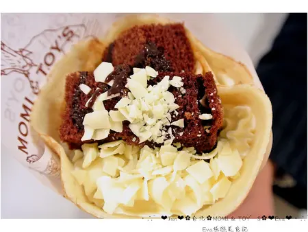 而且~他們的配料也不少,他們的冰是香蕉冰哦!然後會淋上巧克力醬,還有馬卡龍、香菇巧克力餅乾、還有脆餅…等!