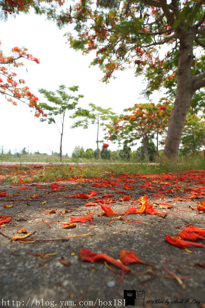 掉落在地上的鳳凰花瓣,像極了紅地毯,