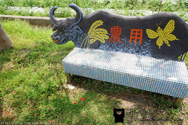 在綠筍路上設有幾個造型坐椅,上圖的椅子鳳凰花做得十分逼真,