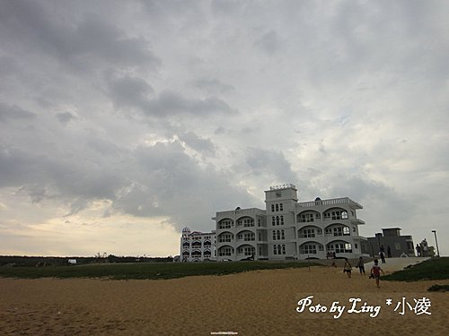 位於山水沙灘前的建築物~不曉得是不是民宿呢?