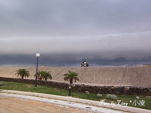 在山水沙灘的這個傍晚~突然出現氣候異象~看看前面整片天空~雲端出現不同顏色~整片厚厚的雲層