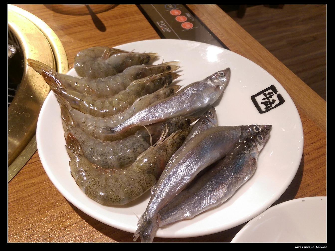 海鮮類吃到飽的提供也不多, 只有蝦子和柳葉魚, 我記得一共三項, 另一種是啥就忘了,