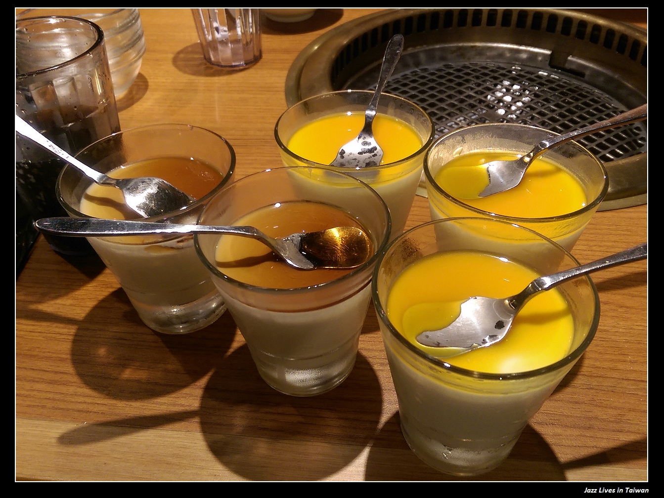 甜點的奶酪, 有黑糖與芒果兩種口味, 這個也還不錯吃, 搭配起芒果醬與黑糖醬, 咕溜咕溜著, 肉還沒上桌馬上就嗑完了,