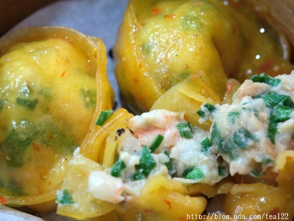 蒸籠小點是港式茶餐廳中的特色,大同小異,然而這枸杞韭菜鮮蝦餃顯然在別家店中好像也沒見過!一般而言,韭菜加熱會變色,因此,少有店家會用這道菜入料理,除非有把握拿捏準火候,不但讓韭菜保持鮮綠,再搭上鮮蝦,那就是一個字「好!」。