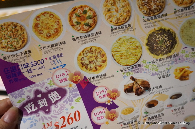 星期一:260/人披薩、飲料、甜點、烤雞腿吃到飽