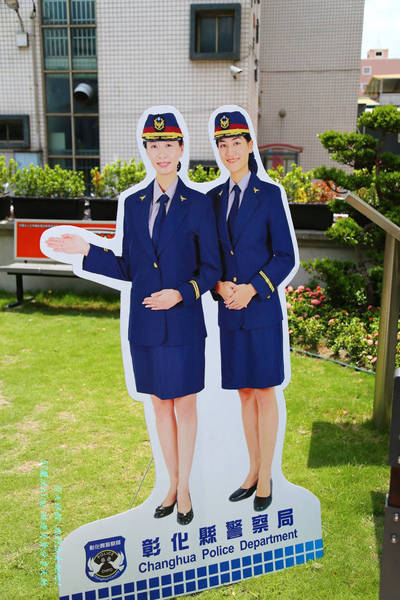 門口還有兩位美麗女警立牌