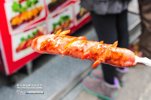 香腸在老闆細心照料下果然鎖住了肉汁,