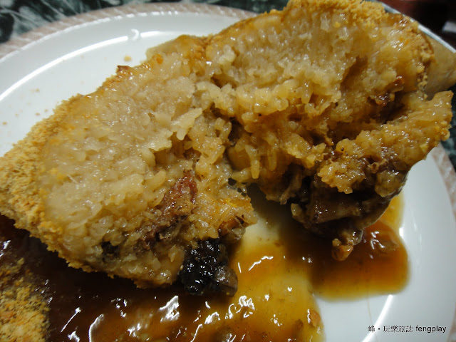 ▲峰直接買中的肉粽,買的數量多店員會問多久才會食用,我們要外帶回台中所以他們用剛出爐的給我們帶回家,好燙喔不過這樣帶回台中才不會壞掉。