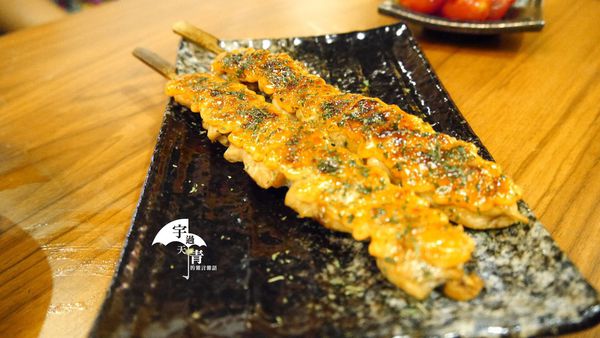 這道明太子雞肉串是串前屋必點料理,雞肉串跟明太子一起烤過之後,