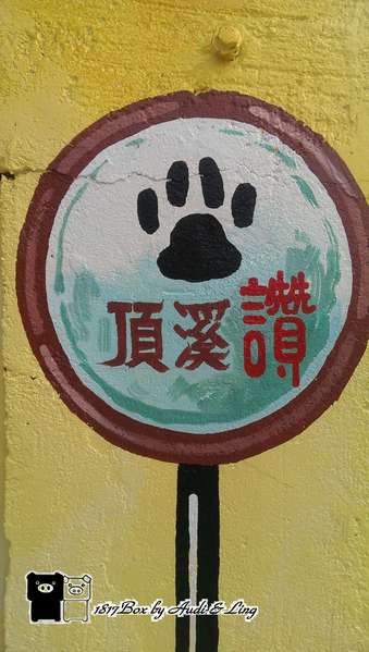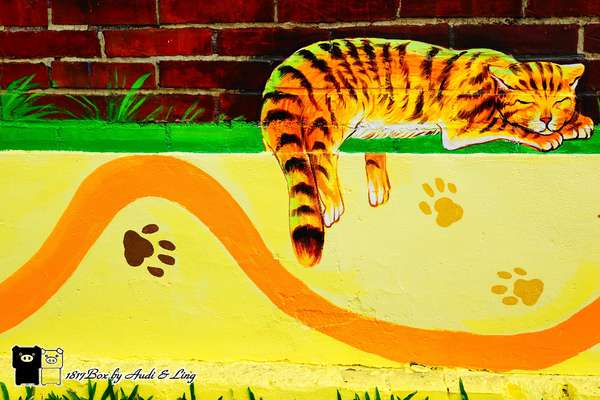 進入頂溪里,屋齡逾半世紀的老屋圍牆上,出現可愛的「貓群」,或慵懶休息、或追蝶遊戲著,旁邊還有可
