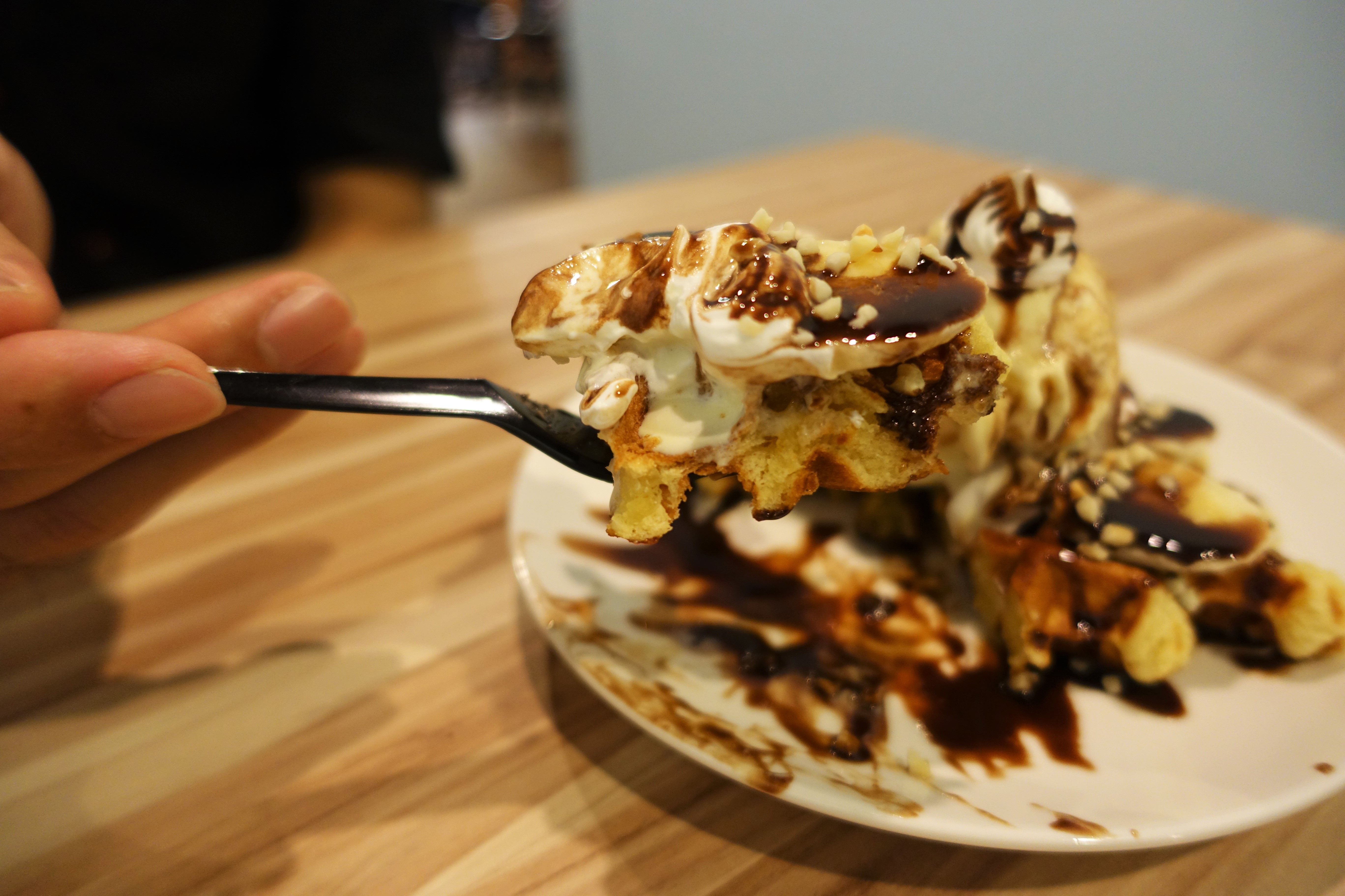 同事表示樂圈的鬆餅能吃到脆脆的外皮,Q彈的口感中帶有濕潤的感覺,Q彈的程度適中,也沒有一些鬆餅店可能會有又軟又柴的問題。