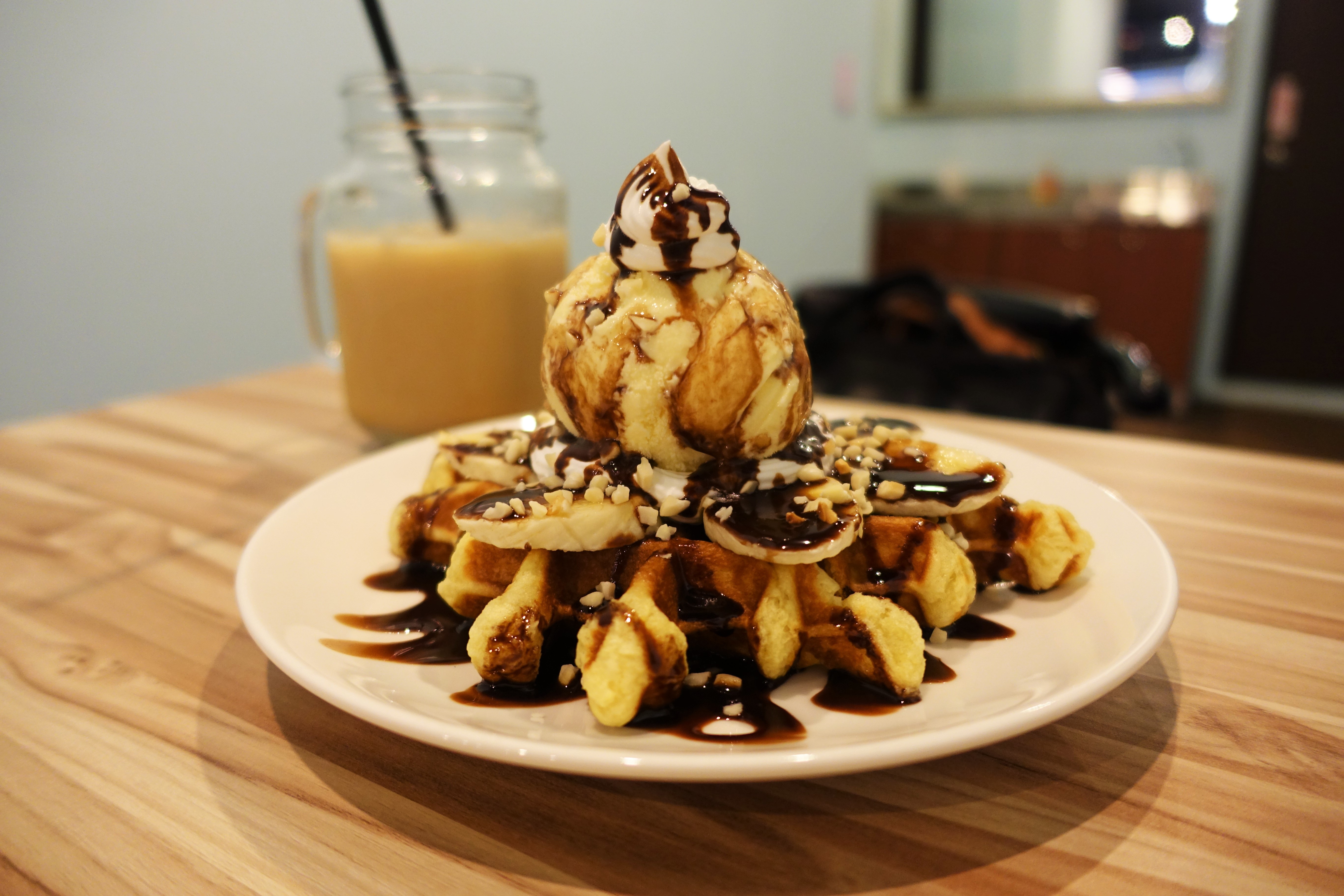 ▼香蕉巧醬冰淇淋鬆餅($110)