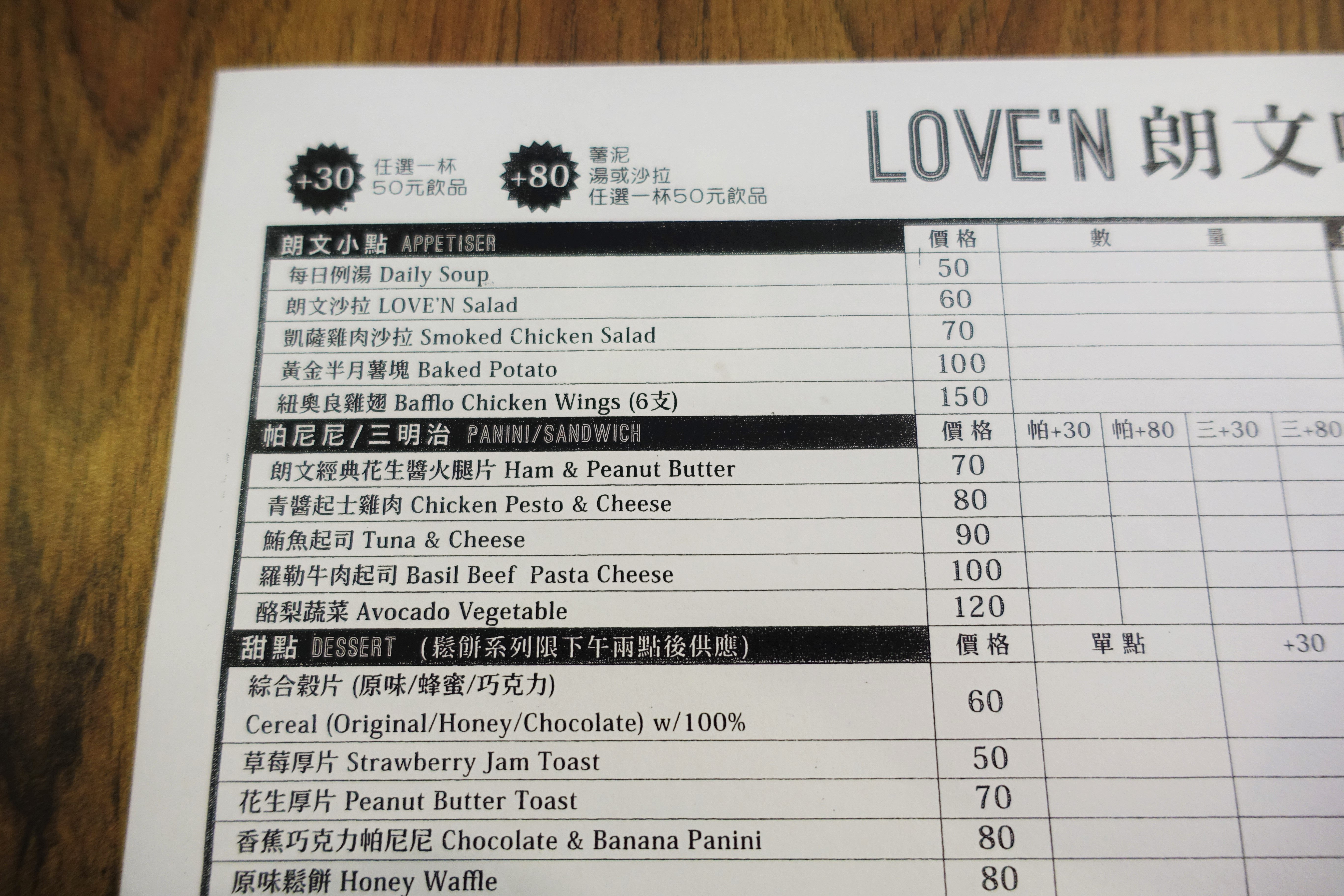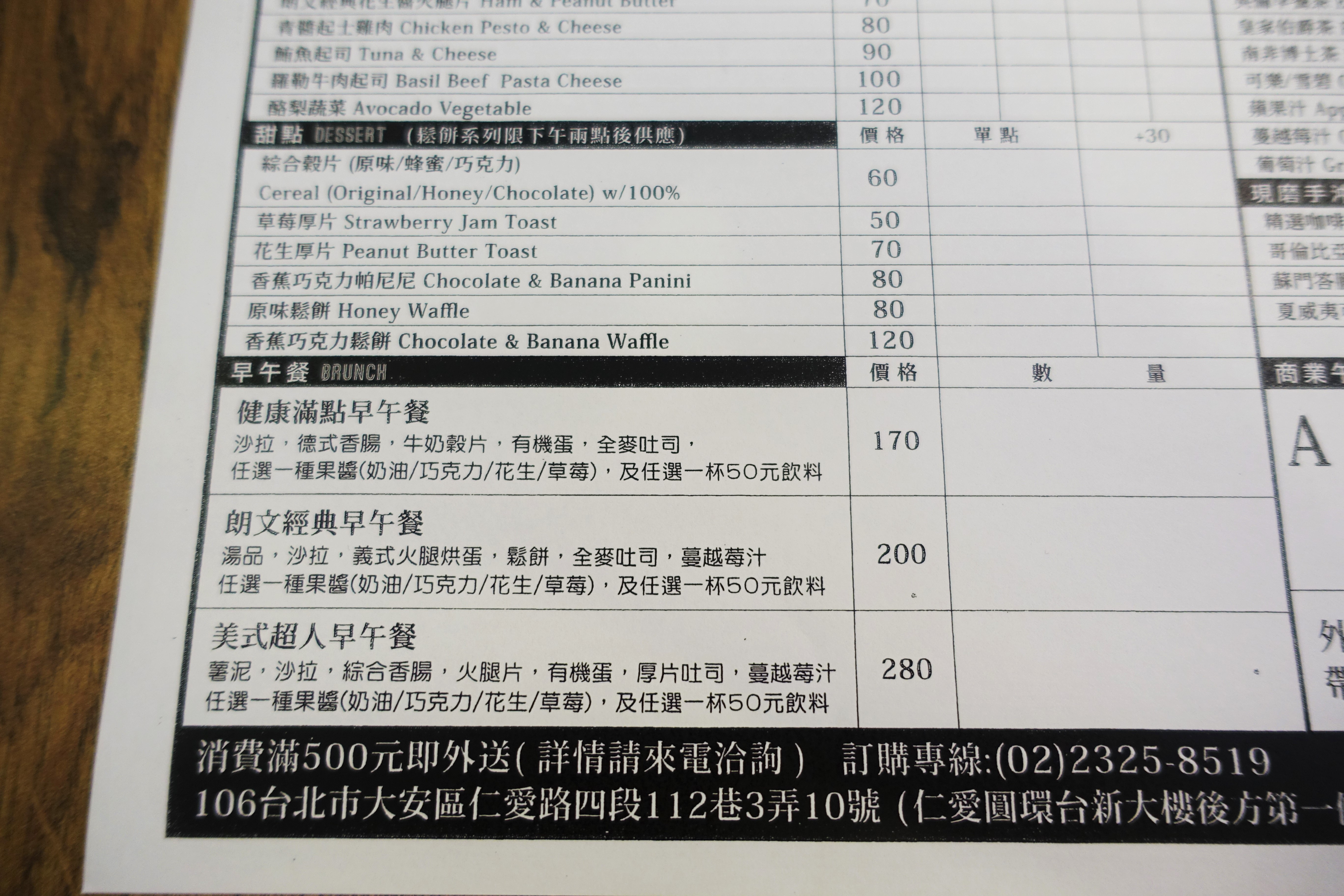 價格:帕尼尼與甜點 $50~$120之間;早午餐套餐$170~$280之間;茶飲$40~$150之間,不收服務費,哥覺得非常平價。
