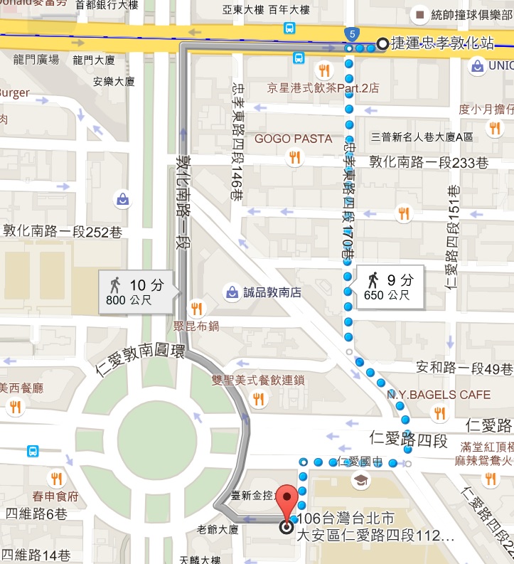 交通資訊:捷運忠孝敦化站-步行約10分鐘