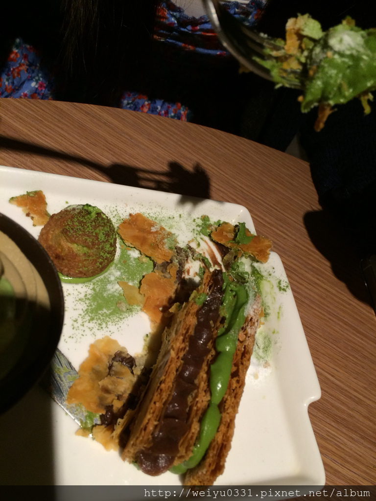 網路上最推的千層蛋糕,怎麼能不吃,是真心推薦的那種好吃,一切下去一層一層爆開的感覺,裡面香濃的抹茶感和一些些奶香。