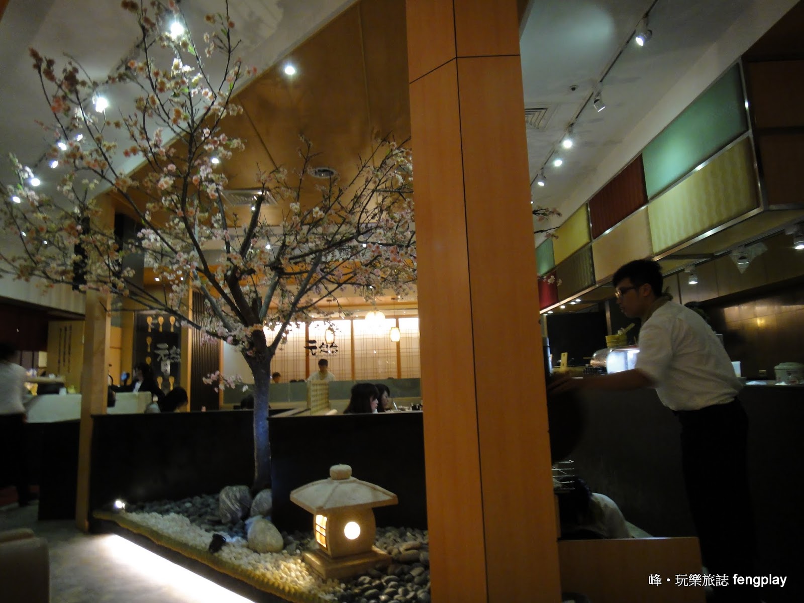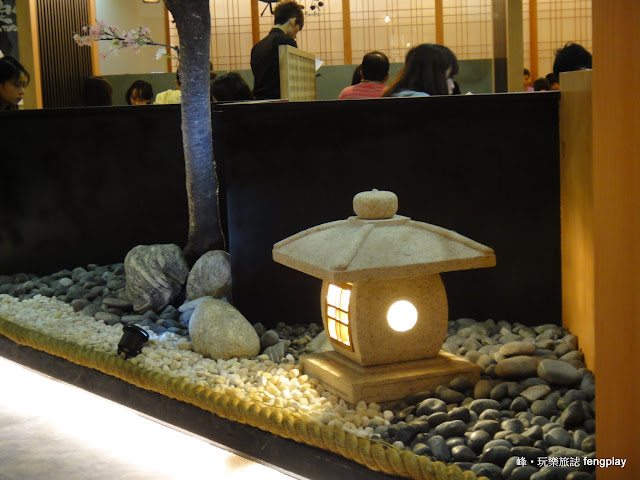 ▲ 欣賞一下日系風格的裝潢,在入口處放置一株櫻花樹與日式庭院小燈。