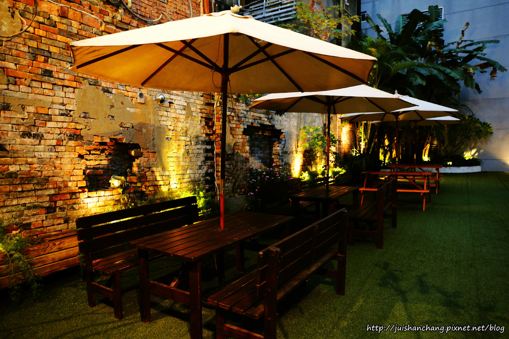 餐廳的戶外環境根本就是城市裡的小花園,完全讓人無法想像在熱鬧的士林夜市裡,有這麼樣的一個地方