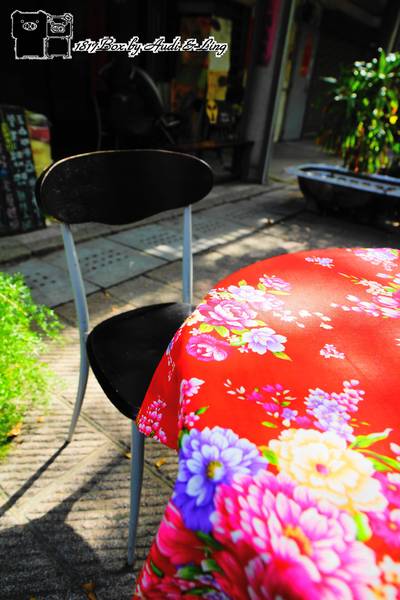 玉山旅社前的小桌子鋪著大花布. 很有味道