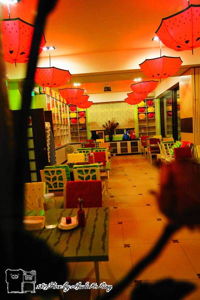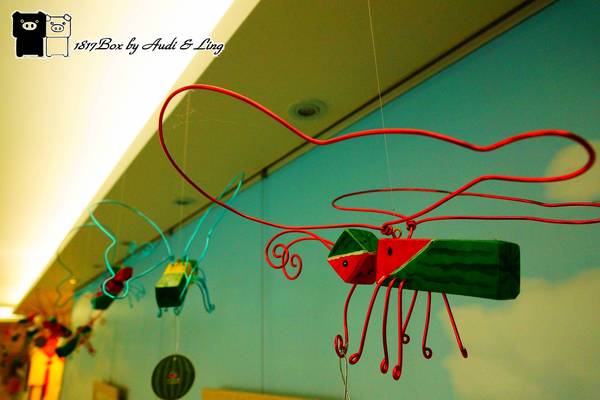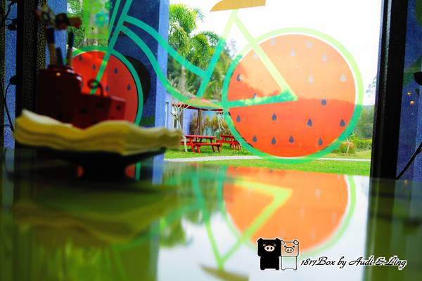 餐廳內. 桌椅. 擺設品 . 都以西瓜設計出發 . 還有禮品部也有販賣西瓜小物