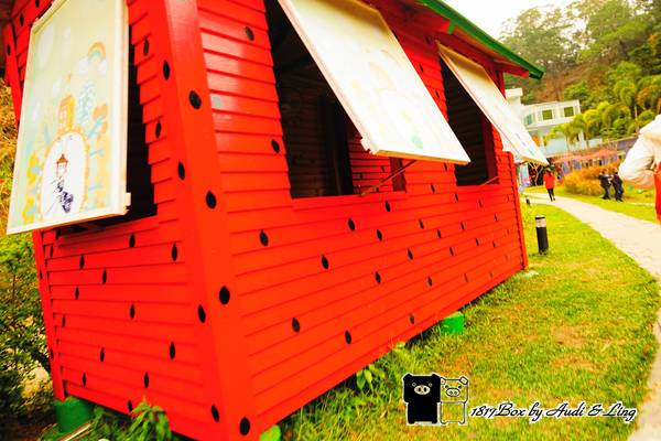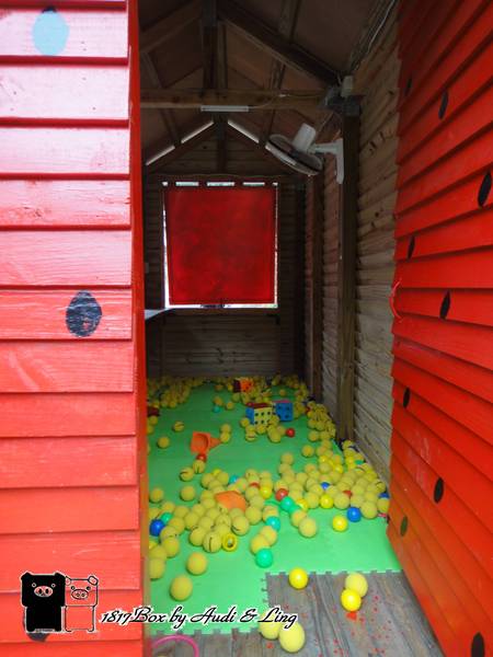 進入莊園馬上看到紅底黑點的小屋. 這設計是要把西瓜的特色展現出來.