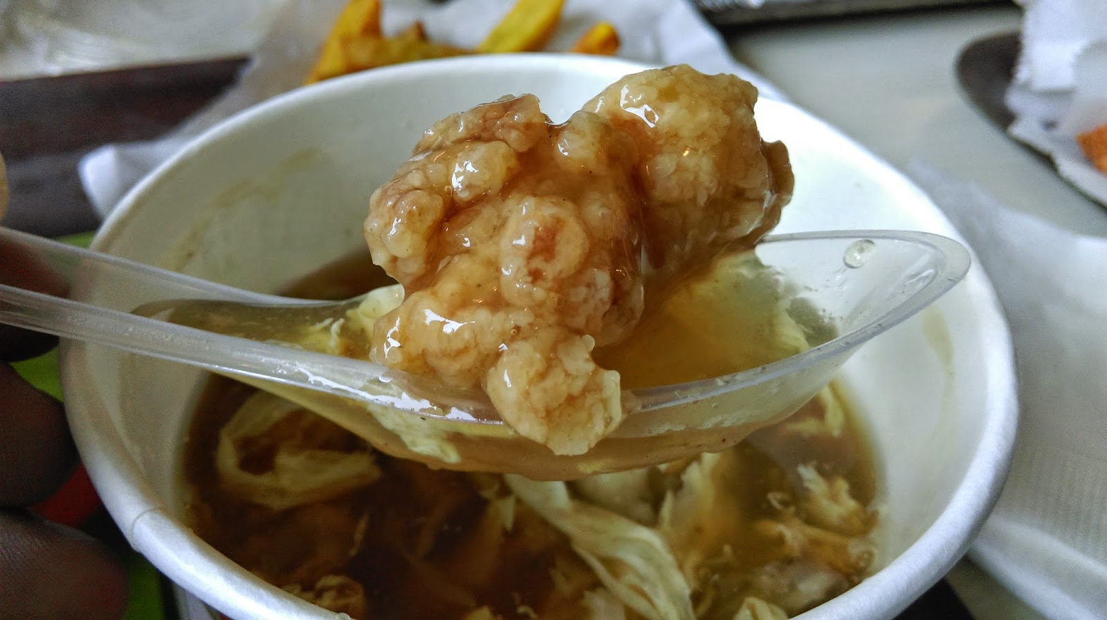 很像土魠魚羹裡的炸魚變成炸雞,炸雞就算泡在湯裡,還是吃得到炸雞的香氣耶(口水流滿地)