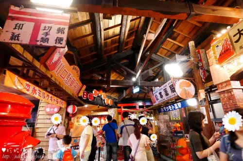 彷彿進入時光的隧道中,館內以日本昭和36年(西元1961年)為時代背景,懷舊的日本街道,赤腳踩著碎石子的地面去川口駄菓子屋買糖果,經過中村堂美妝舖及靜岡茶屋,來到U虎神社參拜