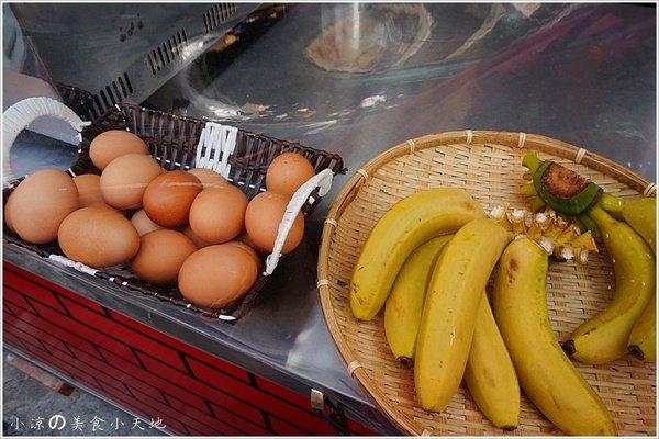 香蕉煎餅的食材很簡單,還使用了營業價值比較高的紅殼雞蛋呢
