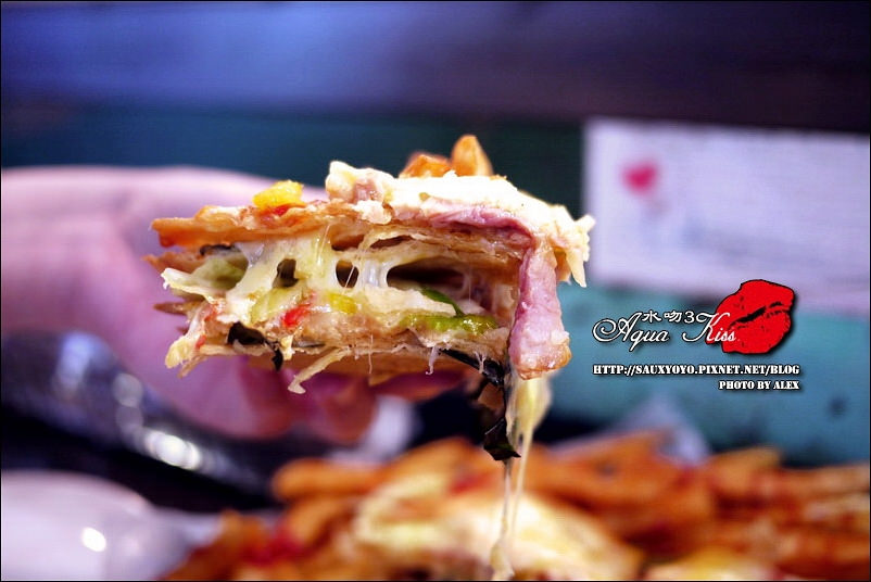 千層塔主要分三層,除了上層是甜的以外,底下兩層都是鹹的,口味上各有不同。