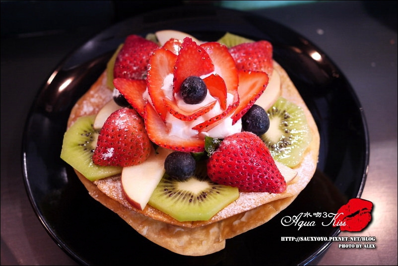 滿滿的水果有奇異果、草莓、藍莓及蘋果舖在酥脆的Pizza餅皮上,