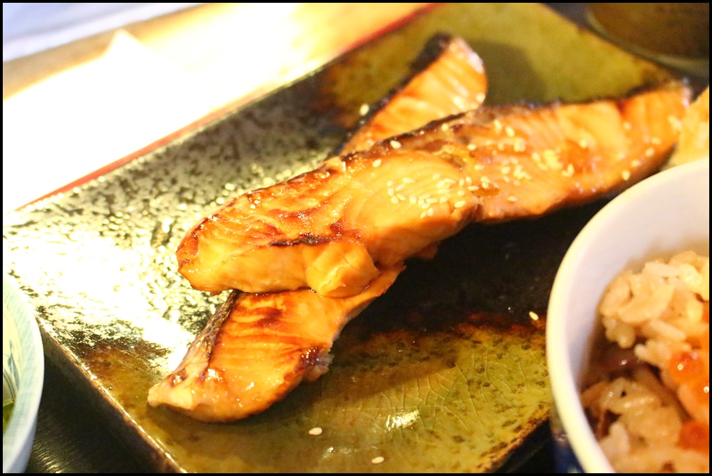 烤鮭魚給了兩大塊,真的吃完這一份定食的話,連男生也都會超飽